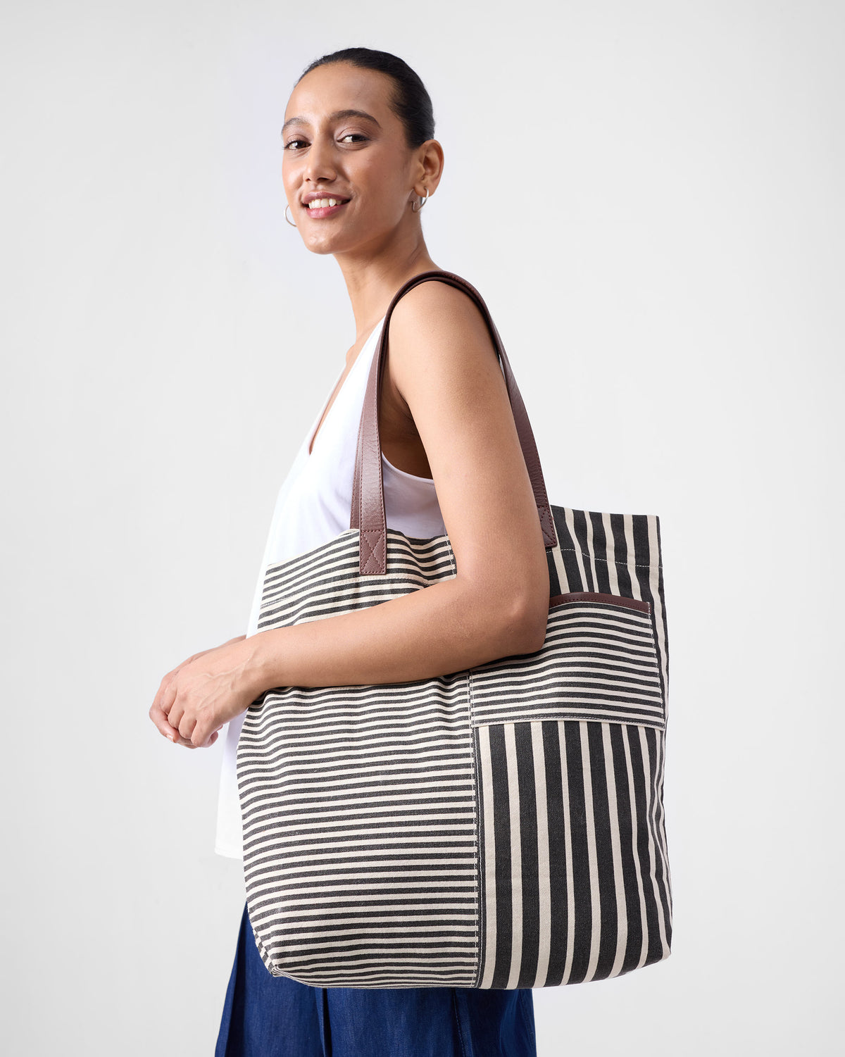 - The Berber Stripe Tote is your everyday carryall, effortlessly balancing function and charm.
