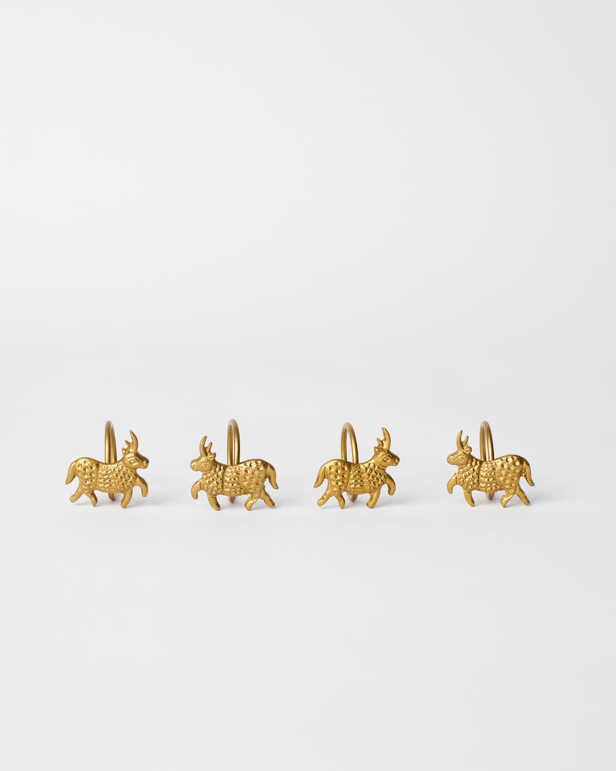 - Inspired by Indus Valley iconography, this set of brass napkin rings features a bold bull motif—sculptural, striking, and rooted in ancient form.