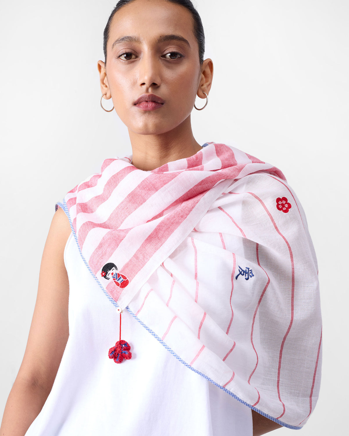 - Cool candycane stripes in a palette of red and white come to life in light cotton handloom.