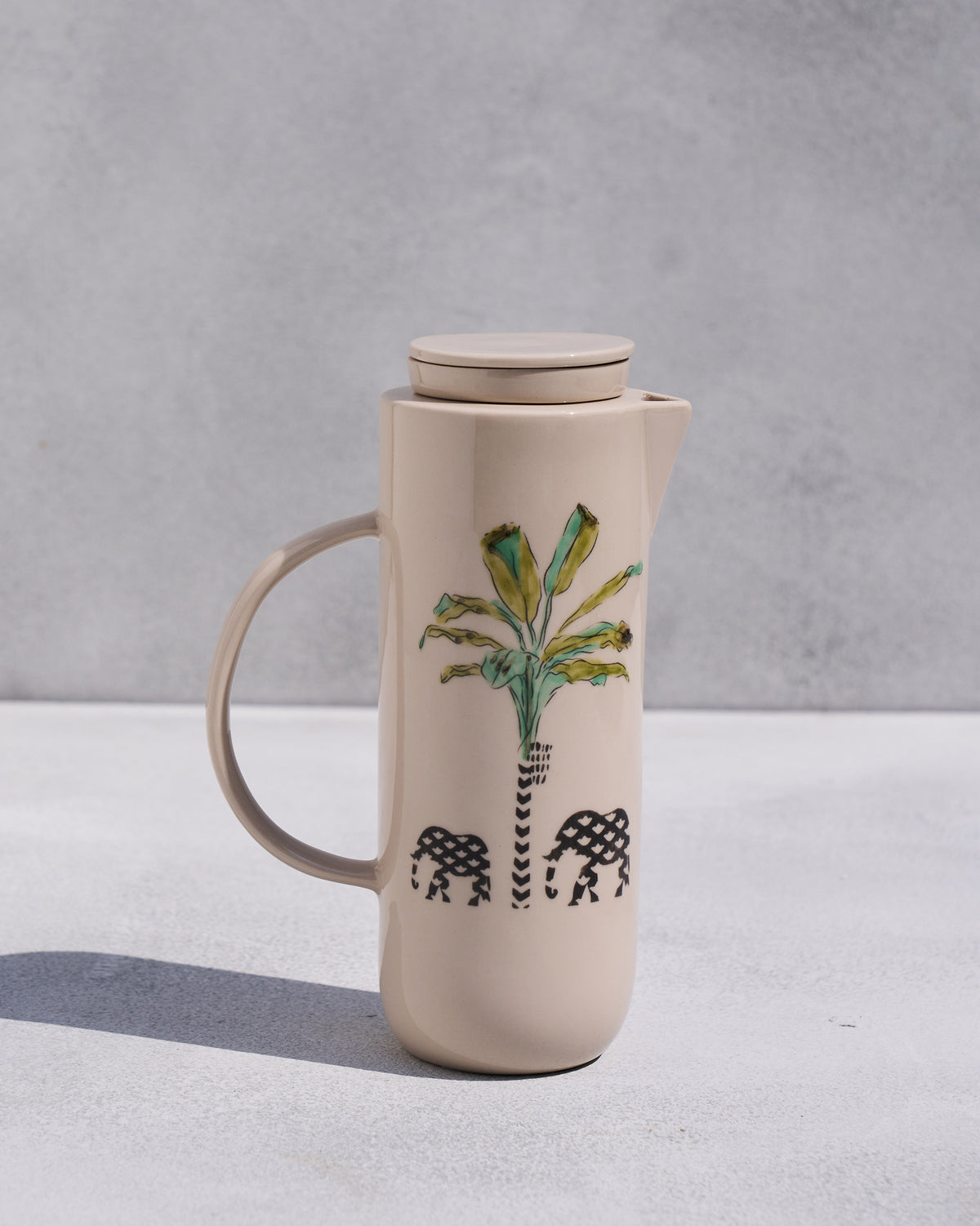 - Features lush hand-painted motifs of the swaying palm, and the elephant