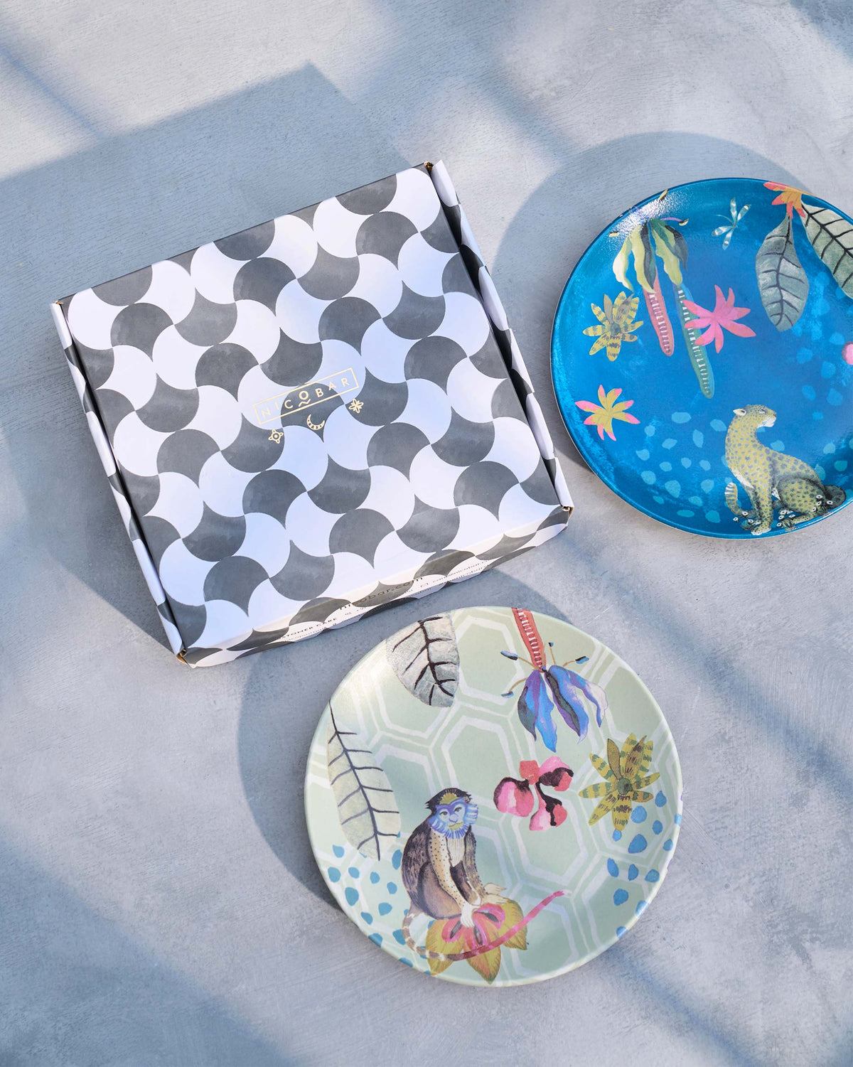 - Bring home the set of Mahi Quarter Plates, drawing inspiration from Zanzibar's rich flora and fauna to add a tropical touch to your tablescapes. The pair of plates come in contrasting shades of deep blue and white with a cheeky lemur and the graceful leopard Nadira.
