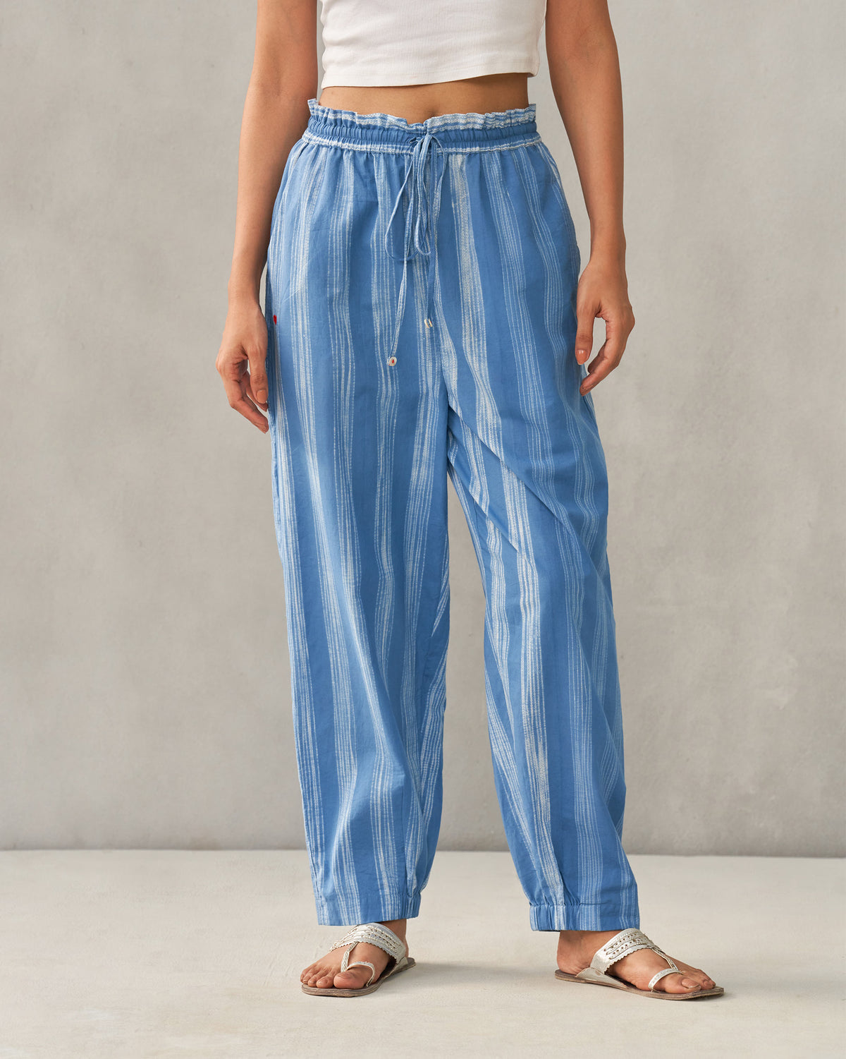 - Our blue Maroc Pants in shibori stripes are a colourful addition to your wardrobe.