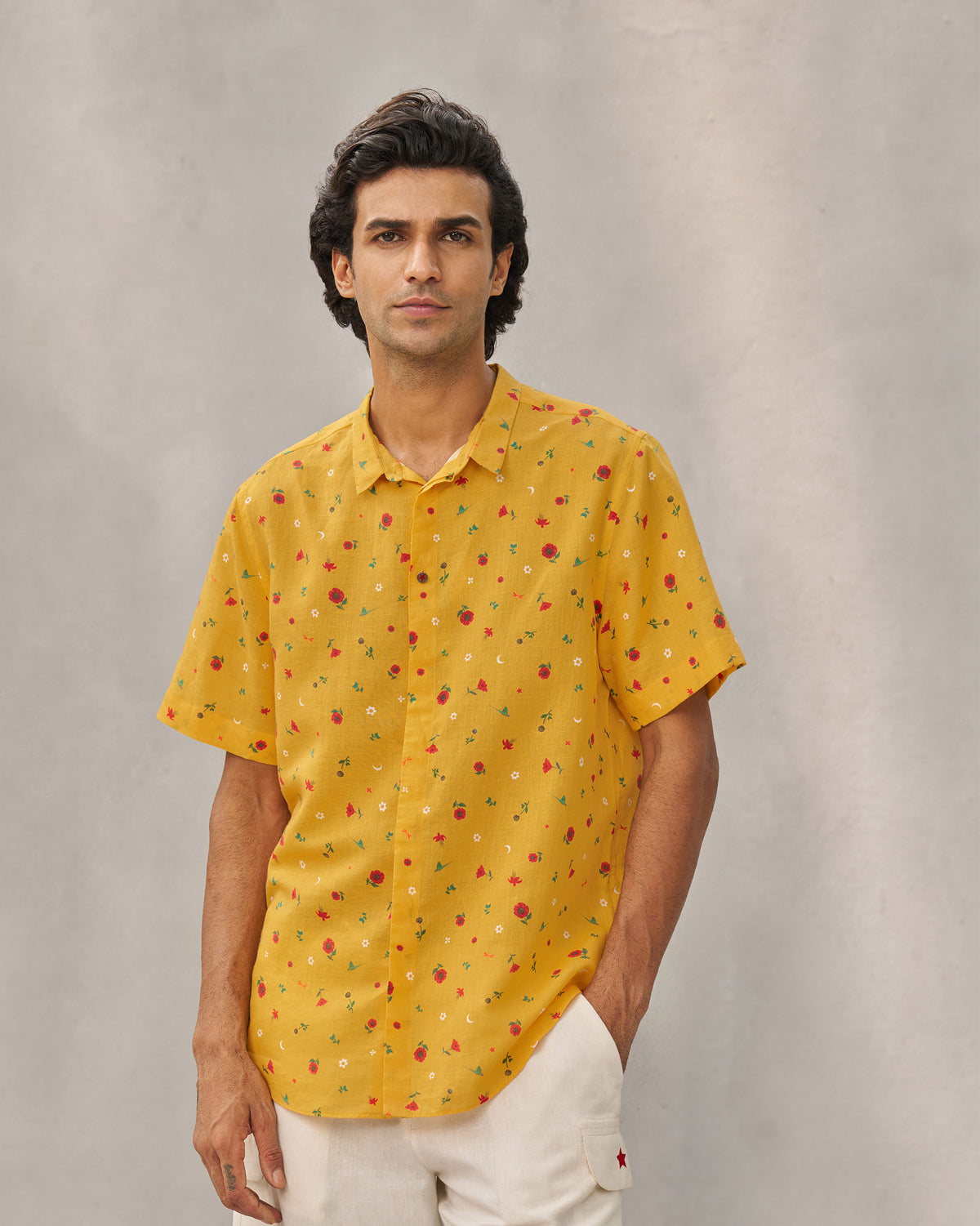 - The yellow Riverline shirt features an all over ditsy print shirt that's oh-so-effortless with a crisp and easy silhouette.