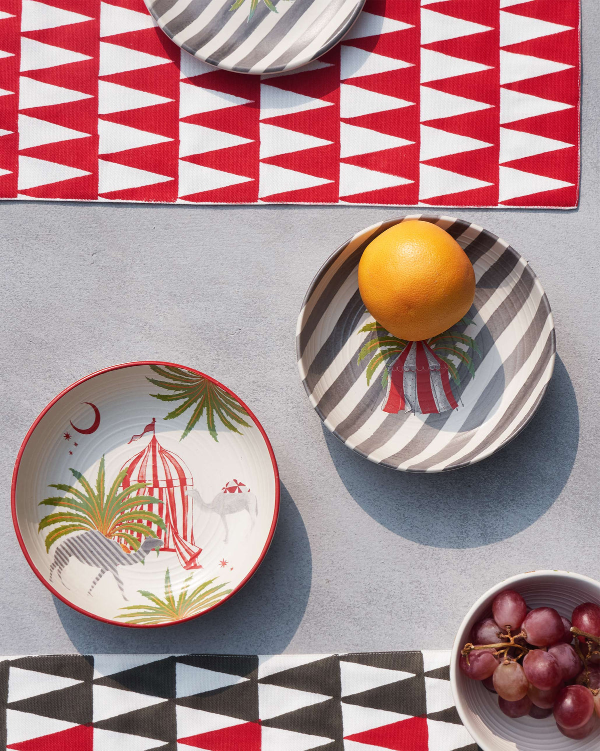 - The motifs on the bowls are inspired by the swaying palm trees that adorn the terrain.