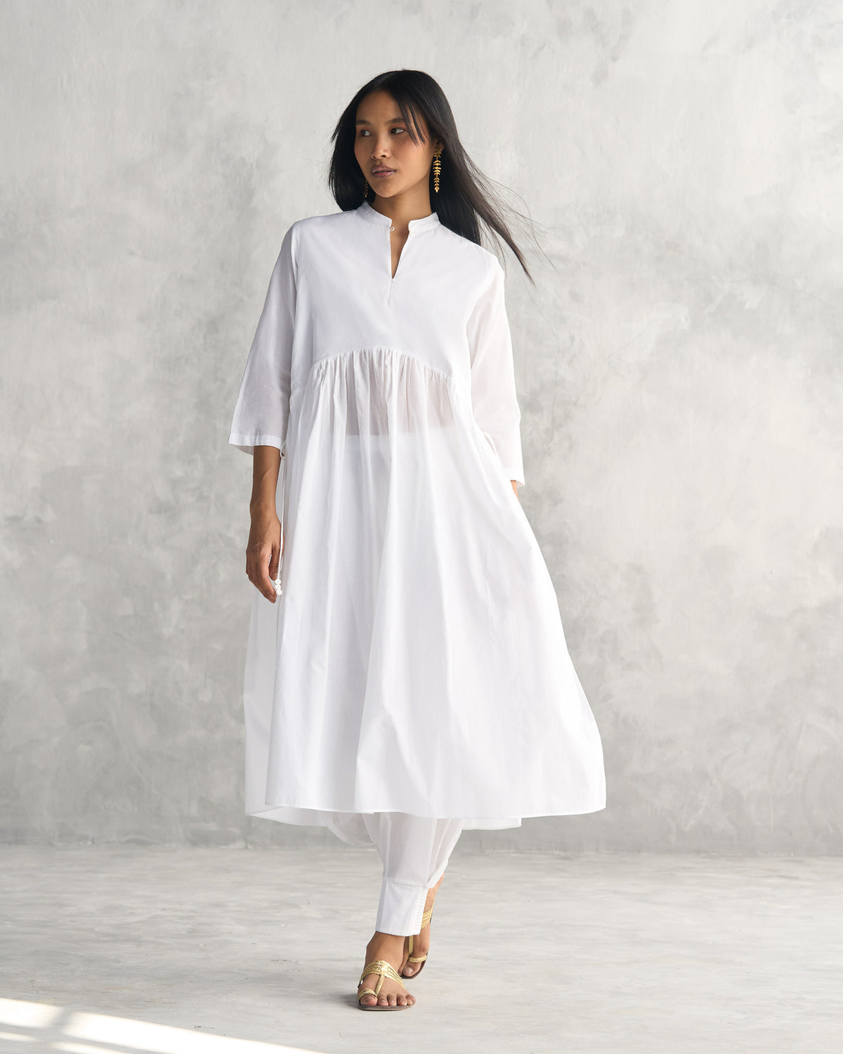 - A regular fitting garment-dyed kurta with gathered waist: super breathable and lightweight for summer.