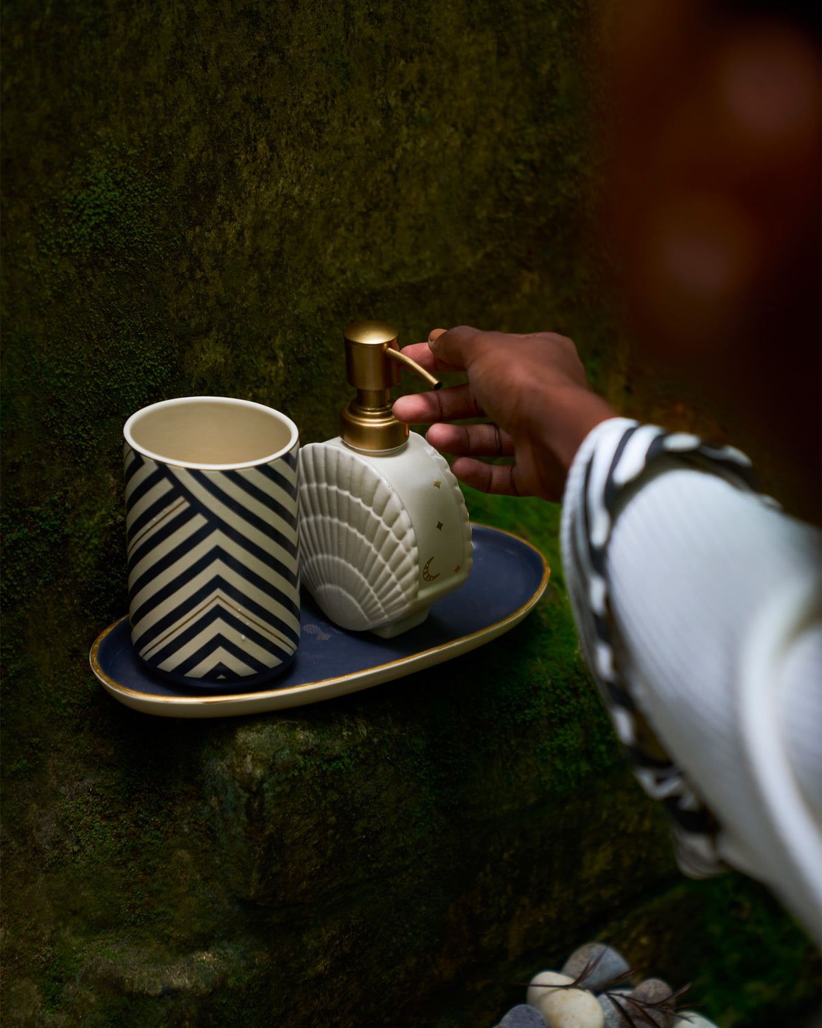 - Elevate your bathroom with Nicobar’s Coral Bathroom Set.