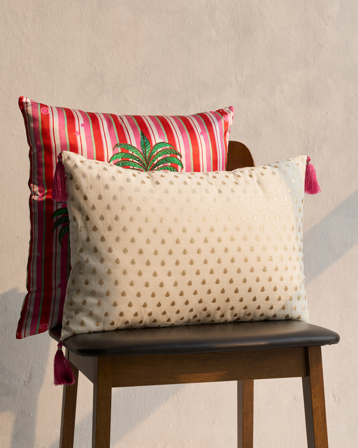 - Nicobar’s Ornate cushion cover is delicate yet beautiful and chic.