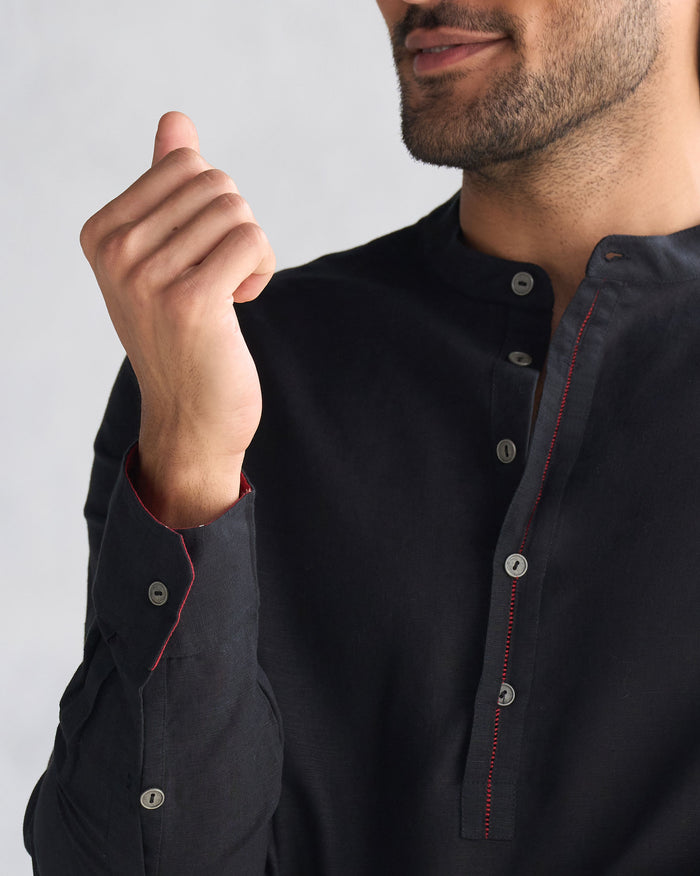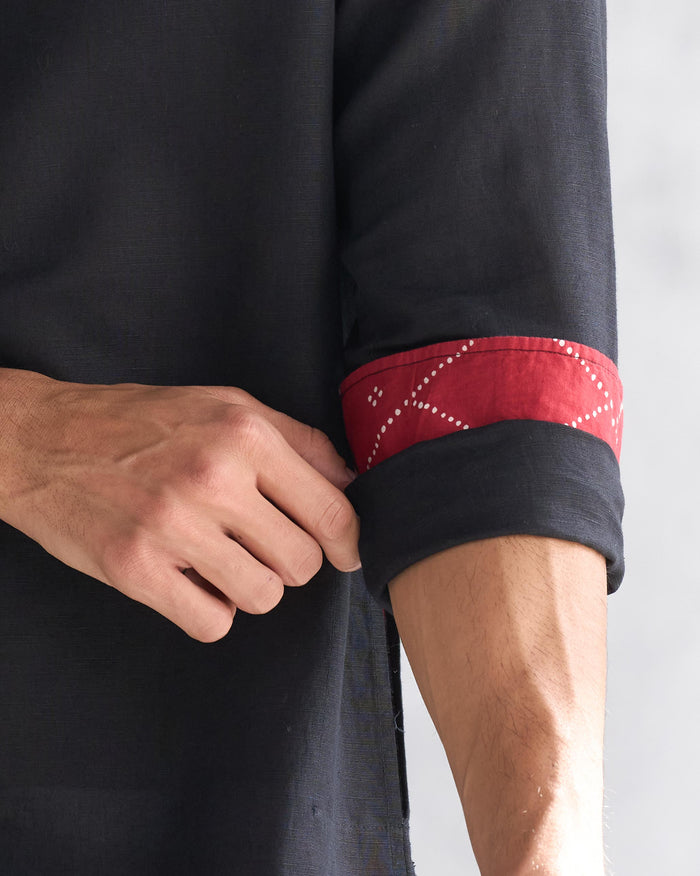 Fit & Flare Angrakha - Red & Ivory Embroidered