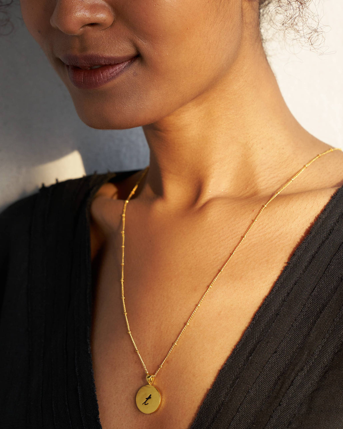 - With handwritten Devanagari akshar on one side and Roman letter on the other, this gold-plated charm with black enameling is the ideal gift for when you want to make it personal.