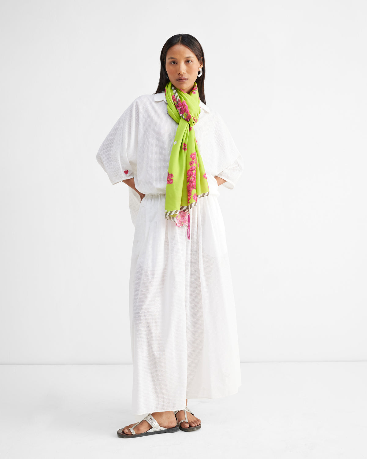 - The Kokoro is crafted from 100% cotton in a crisp, breathable texture with a subtle, sophisticated weave. Spot the button on the collar stitched with vibrant fuchsia thread, adding a pop of color.