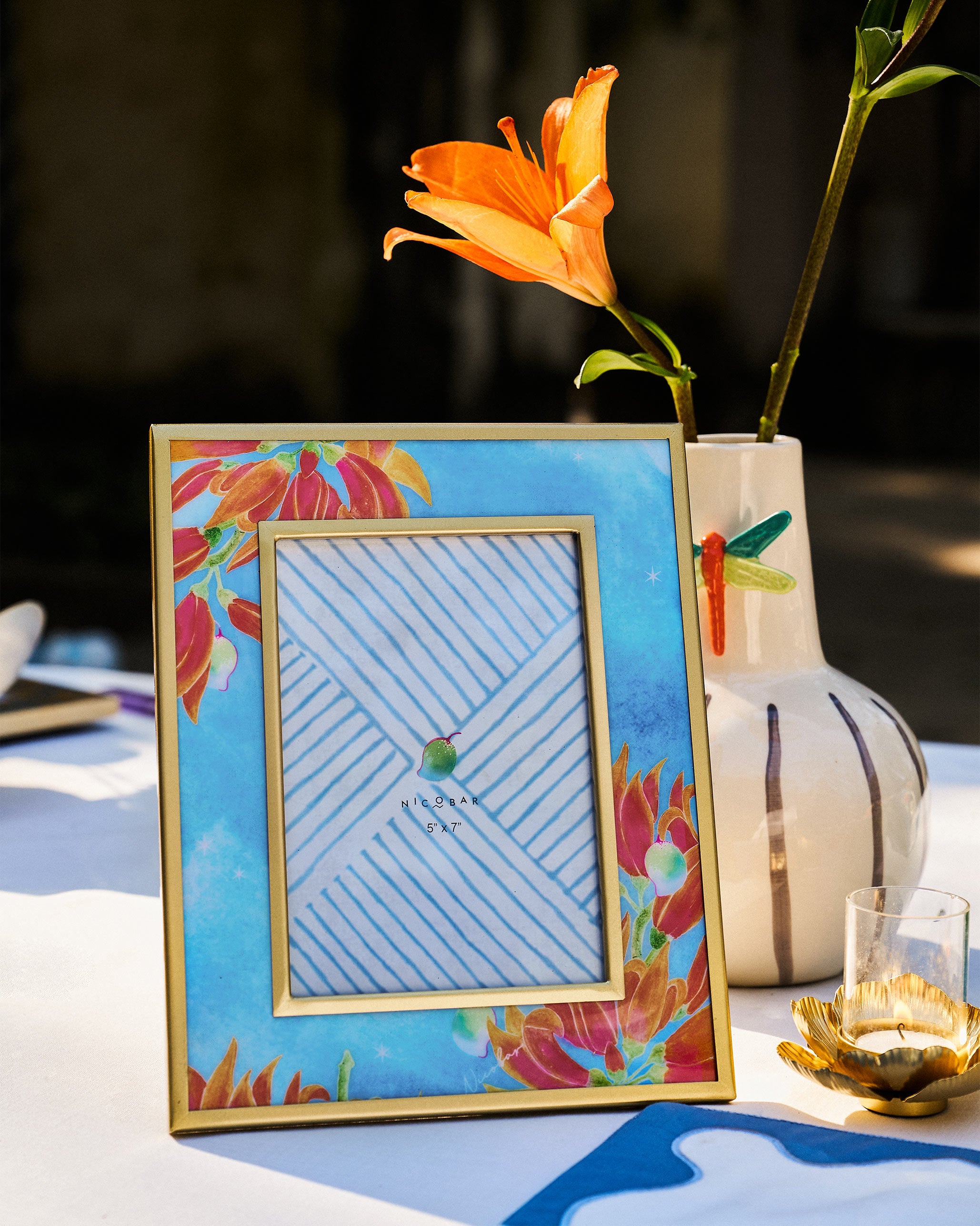 - Inspired by the rivers of India, which connect people, cities, and rituals, we turn inward to where it all began. The Aaranya Photo Frame reflects the richness of natural landscapes, featuring lush foliage prints in charcoal and gold tones.