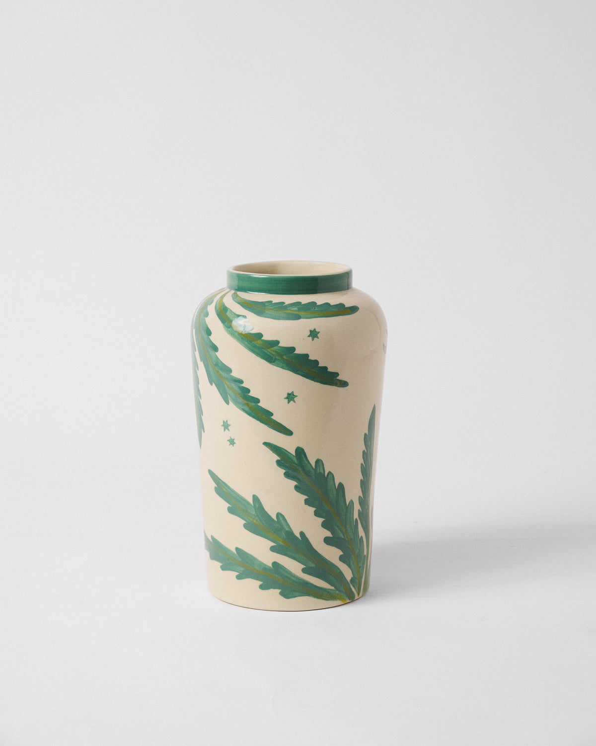 - Inspired by the rivers of India, which connect people, cities, and rituals, we turn inward to where it all began. The Aaranya Vase brings the serenity of nature to your home, featuring hand-painted green leaves on an ivory base.