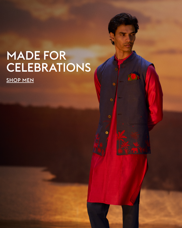 Lama Smocked Kurta - Charcoal & Watermelon Embroidered