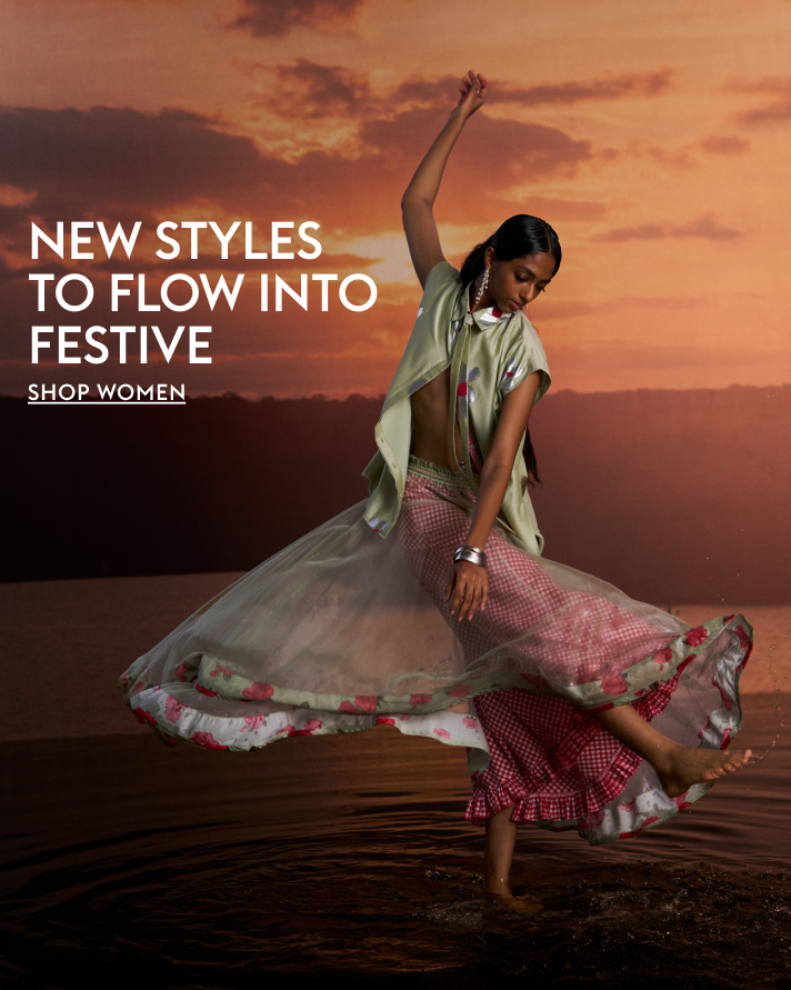 Front Pleated Kurta - Charcoal & Watermelon Print