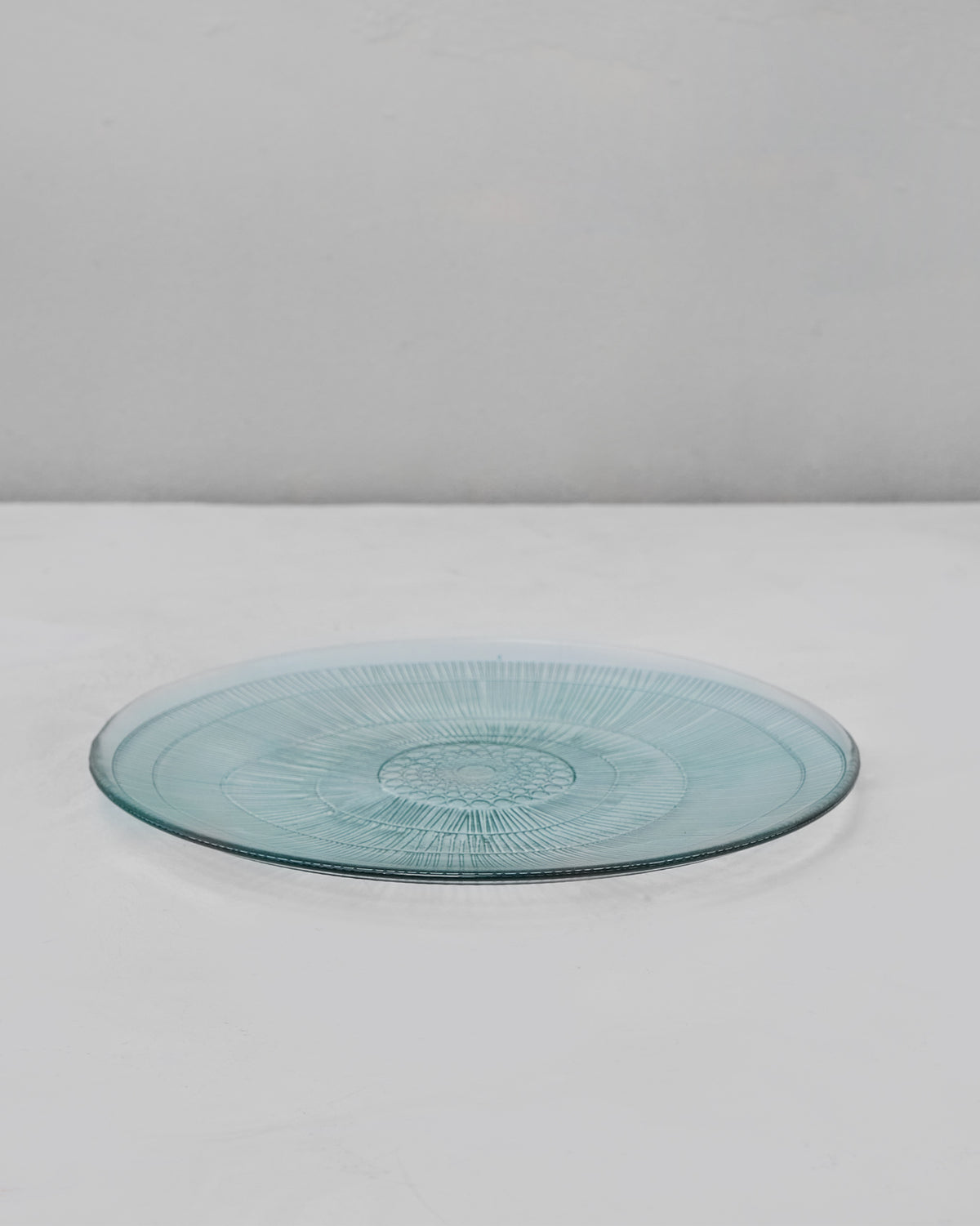 - The Bask dinner plate has a slight green tint, characteristic of recycled glass. It is made from 100% post consumer recycled glass.
