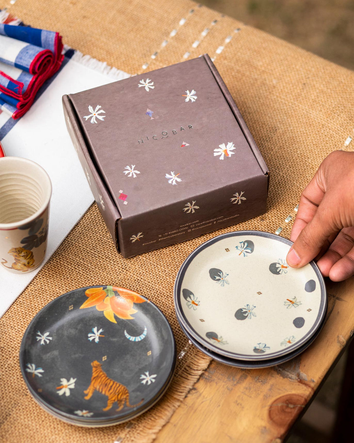 - Crafted in smooth stoneware, our tea plates feature motifs inspired by the Teesta river's path through Bengal