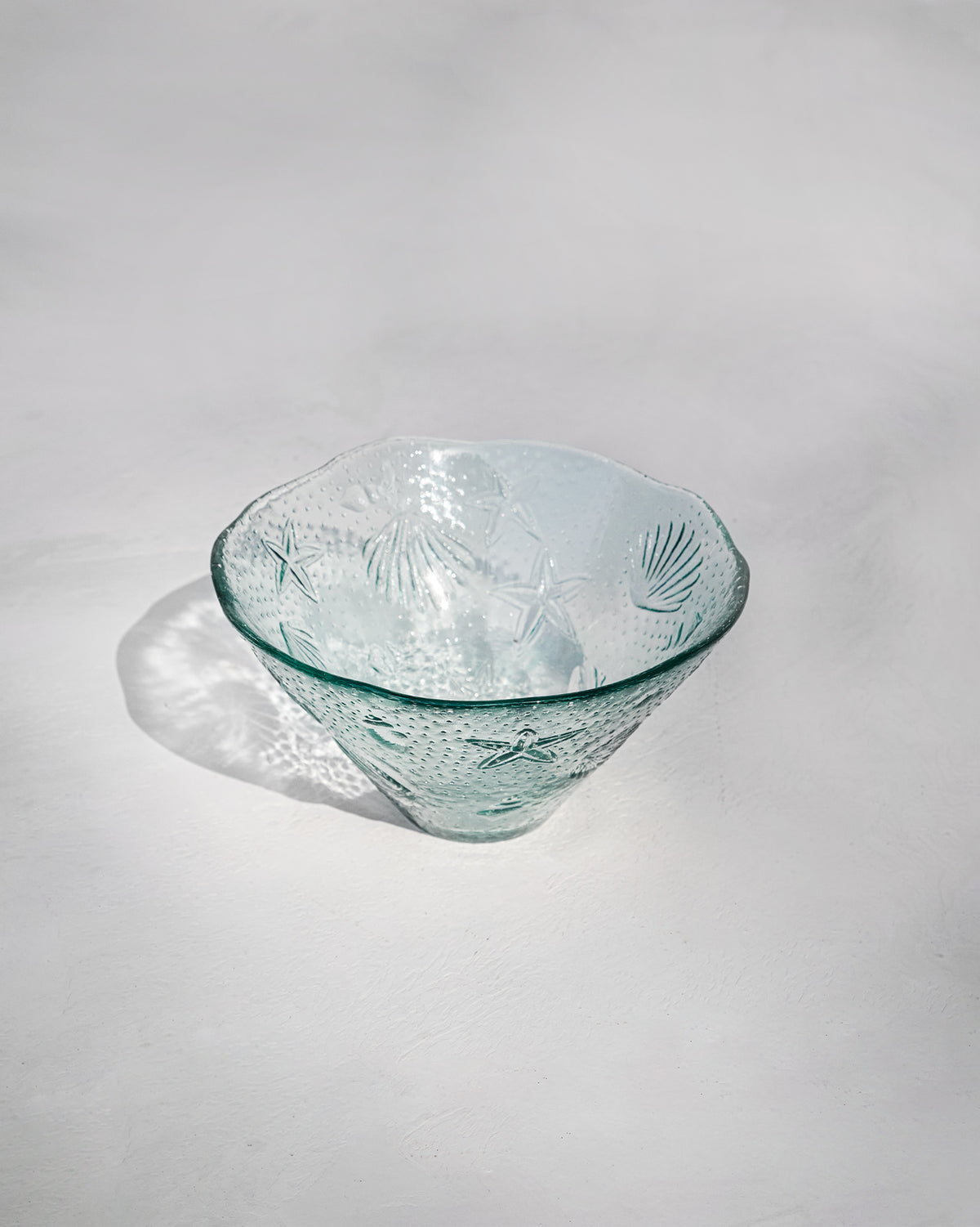- The Shore nut bowl has a slight green tint, characteristic of recycled glass. It is made from 100% post consumer recycled glass.