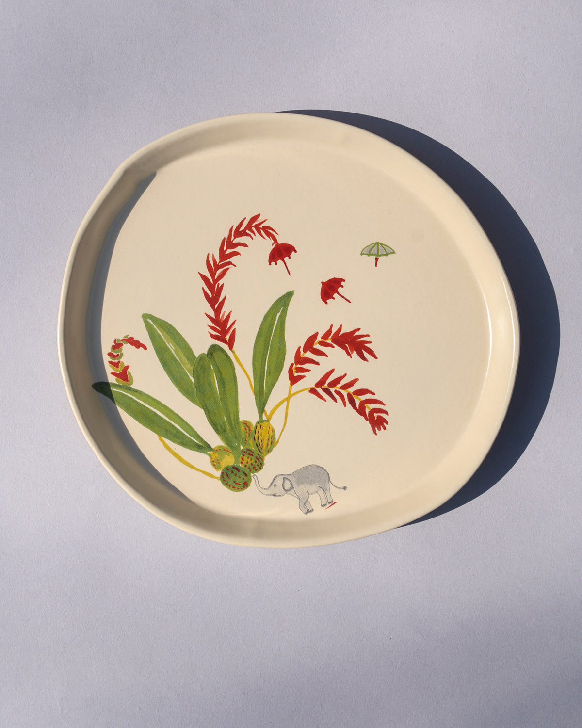 - A lush dessert plate elevated with motifs inspired by Myanmar's very special tiger lady flower and the white elephant