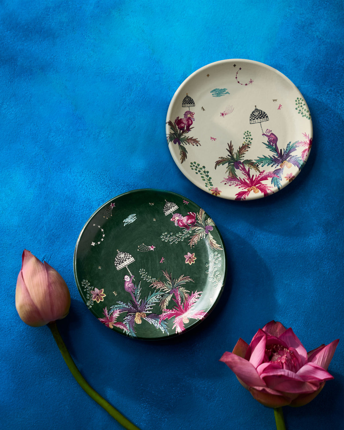 - Made in stoneware, Nicobar’s Barong dinner plate truly epitomises elegance. The motifs on the plate are inspired by Bali's flora and fauna.