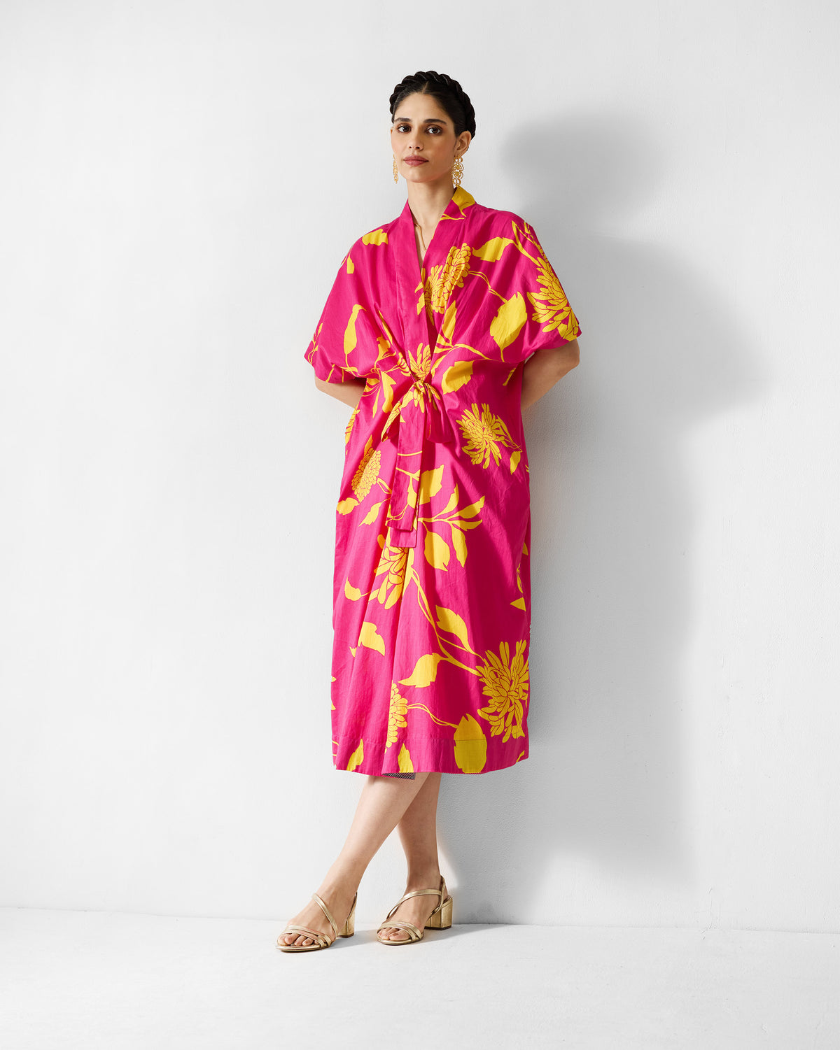 - Playful yet polished, the Doda Dress is crafted in soft, breathable 100% organic cotton voile and features a vibrant lime abstract floral print on a bold fuchsia base.