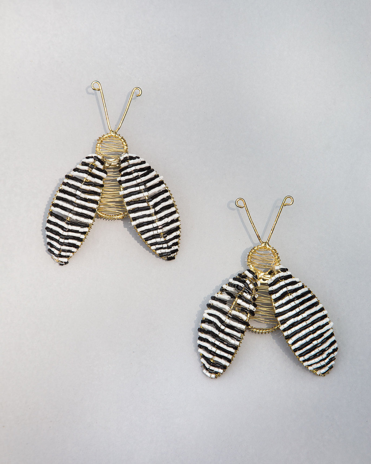 - A set of two bugs crafted in aluminium wire and decorated with glass beads