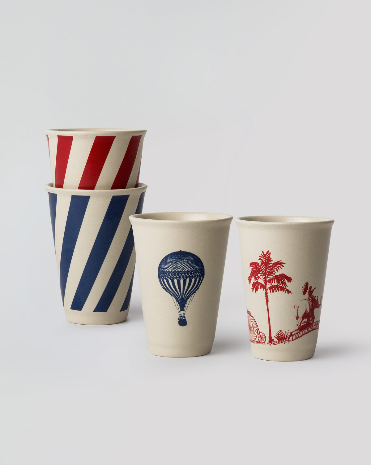 - Inspired in equal parts by India in form and circuses in spirit, our set of four stoneware kulhars are punctuated with red and blue stripes and playful motifs