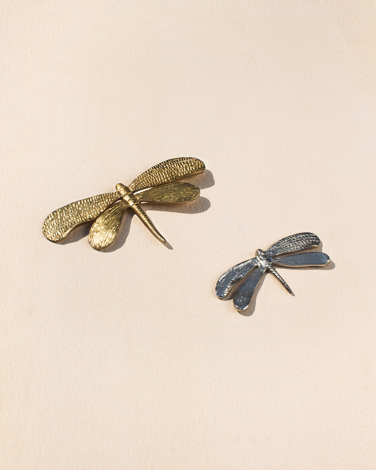 - This dragonfly is crafted in aluminium and polished to an anqitue brass finish.
