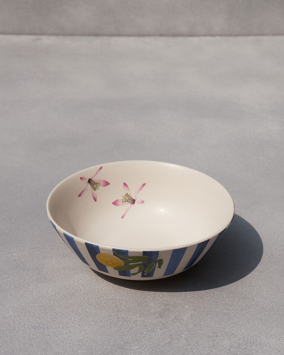 - The colours and textures of Morocco: breezy palms, bright lemons and our signature stripes in indigo feature in the Asfar Curry Bowl.