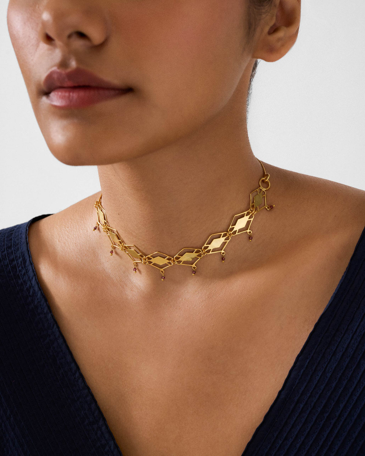 - Inspired by the iconic diamond shape of barfi, this necklace is a subtle tribute to tradition with a modern touch.