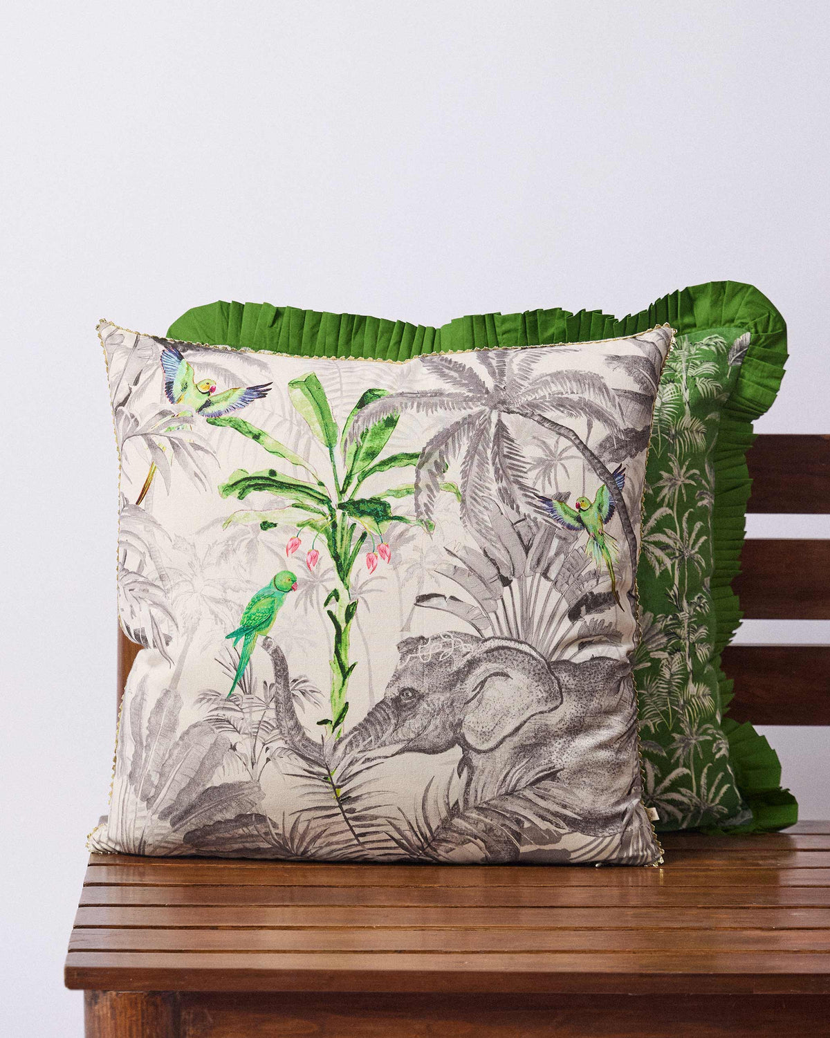 - The Ceylon Ele Cushion Cover features a whimsical all over pattern reminiscent of our travels to Sri Lanka. The digi-printed cushion cover features a striking silver gota edge and a stylised striped back.
