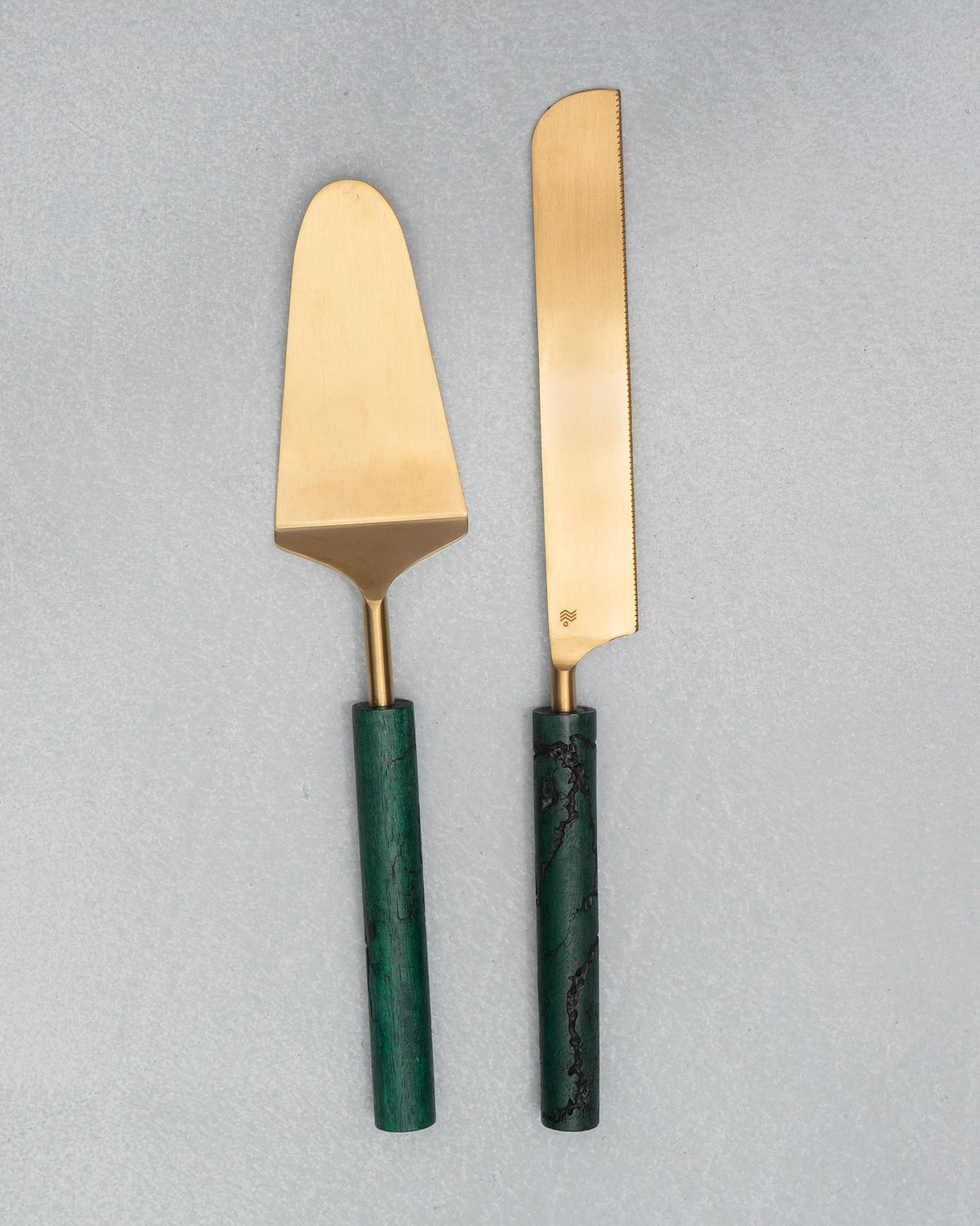 - The deep green Dune Cake Knife Set is the perfect accompaniment to your cake tray.