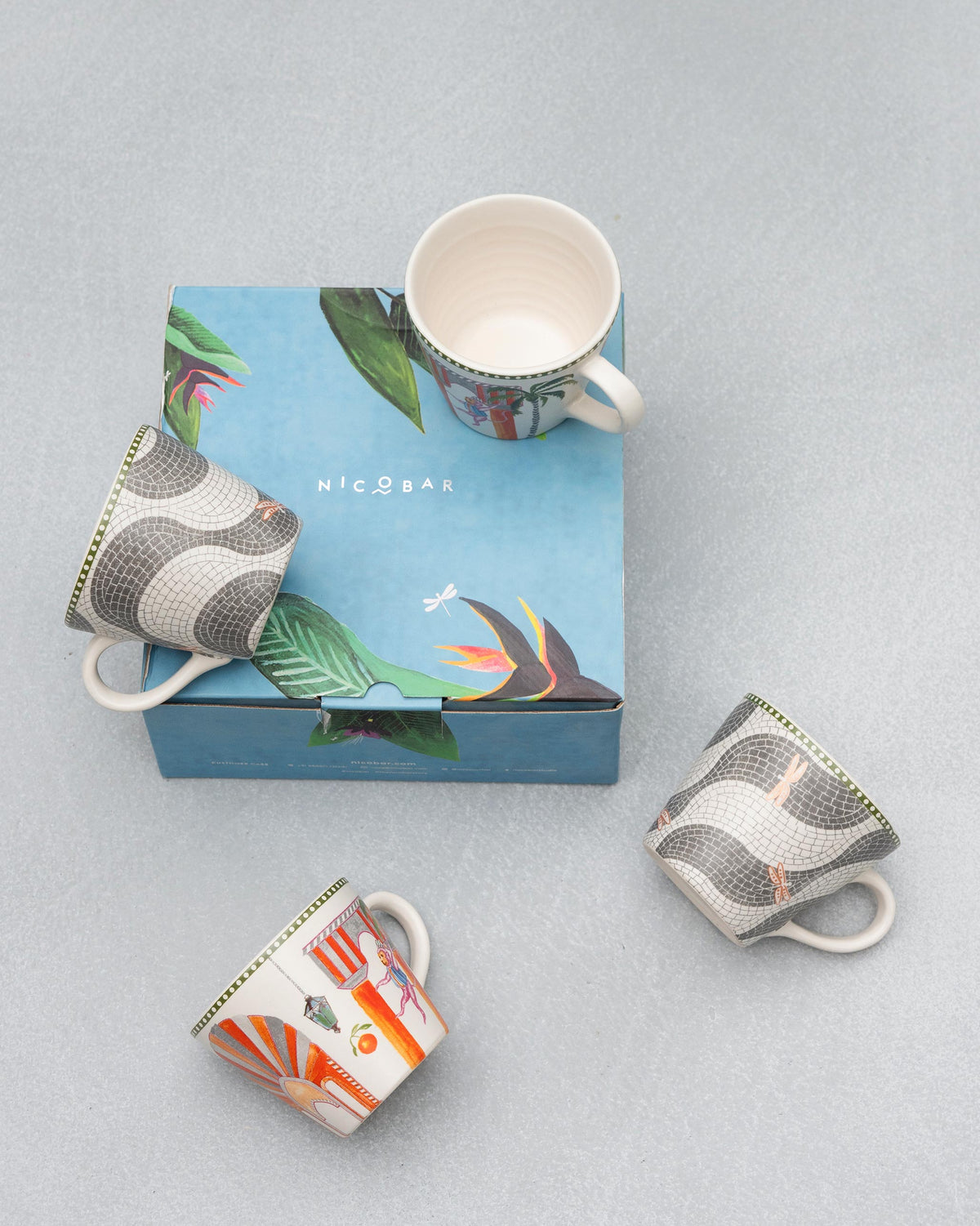- The colours and textures of Marrakech meet whimsical illustrations with leopards, roses and dragonflies on a tiled background, all inspired by our travels in the Dune Espresso Mugs.