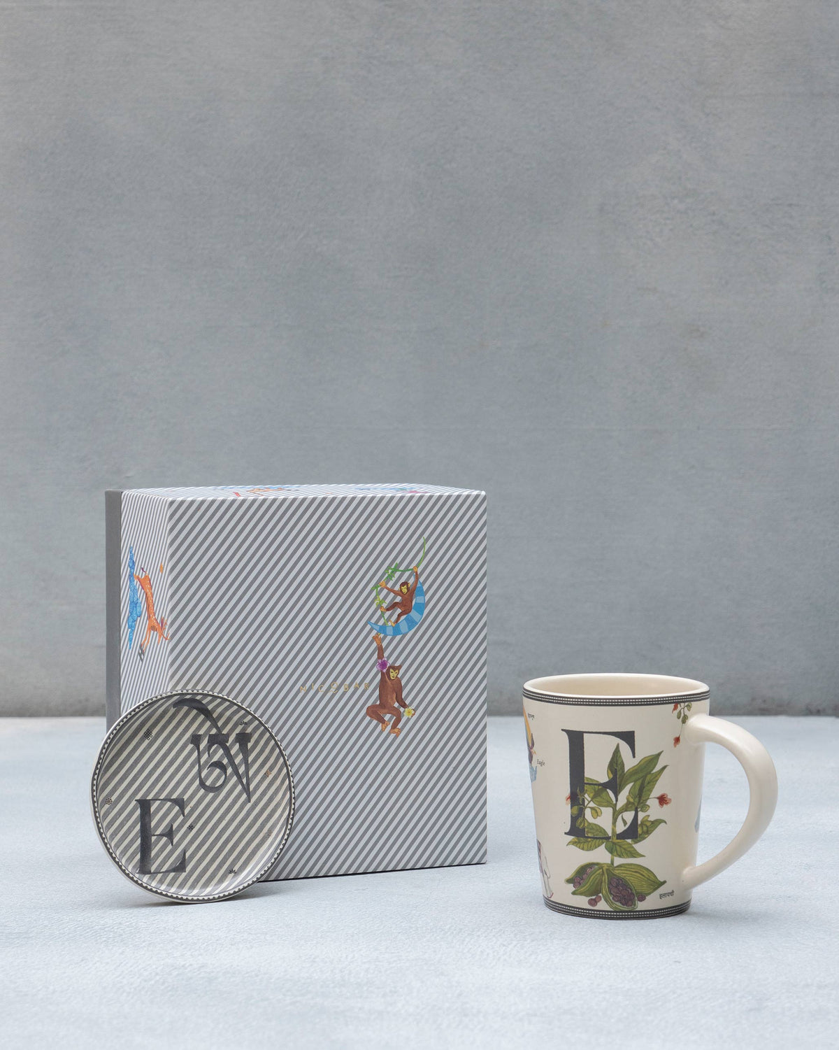 - The E Alphabet Set comes with our beloved Alphabet mug and Akshar Coaster; personalised and thoughtful, these are a real love letter to India's regional dialect and scripts