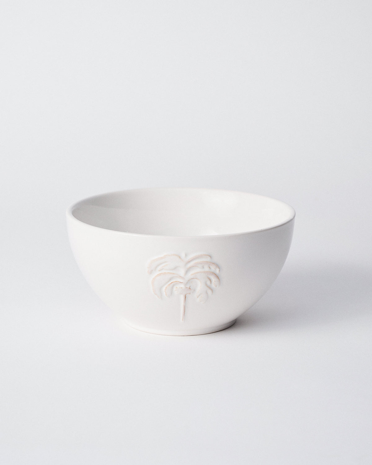 - With embossed motifs and a classic ivory hue, the Ele Palm Serving Bowl is designed to serve up delicious meals.