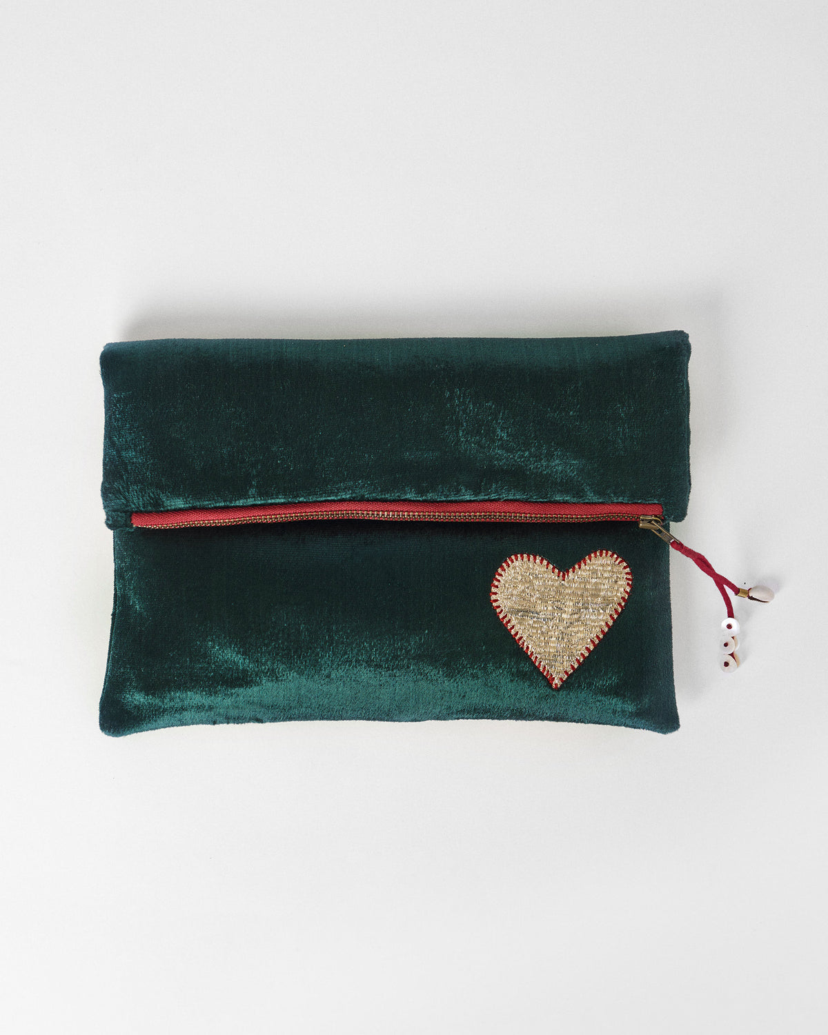 - The Fold Over Clutch is a festive favourite, sleek in deep green velvet with just the right amount of sparkle.