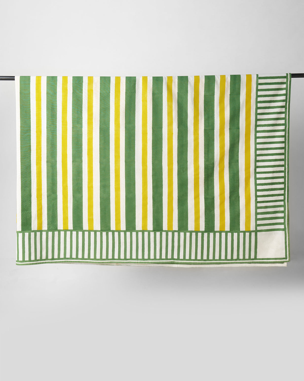 - A striped celebration in green and yellow—this table cover brings an island mood to your meals.