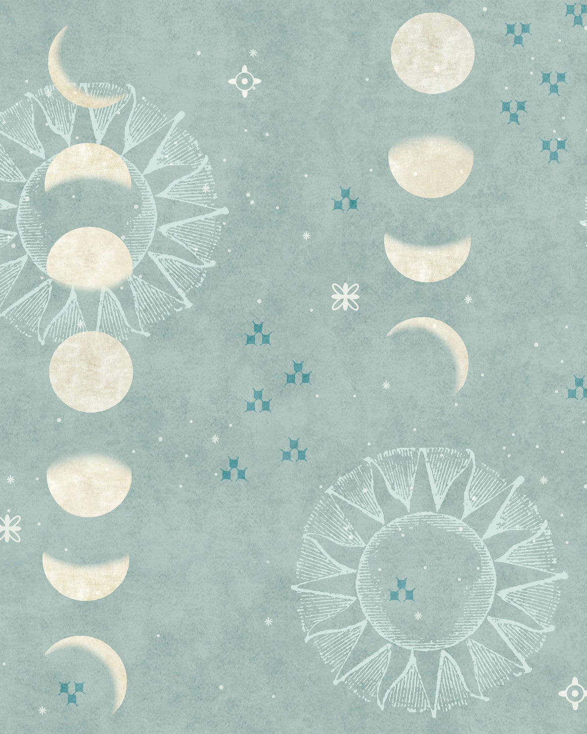 - Peppered with a mosaic of motifs of the waxing and waning moon, the glimmering sun, and other little elements of intrigue that offer a constant exploration