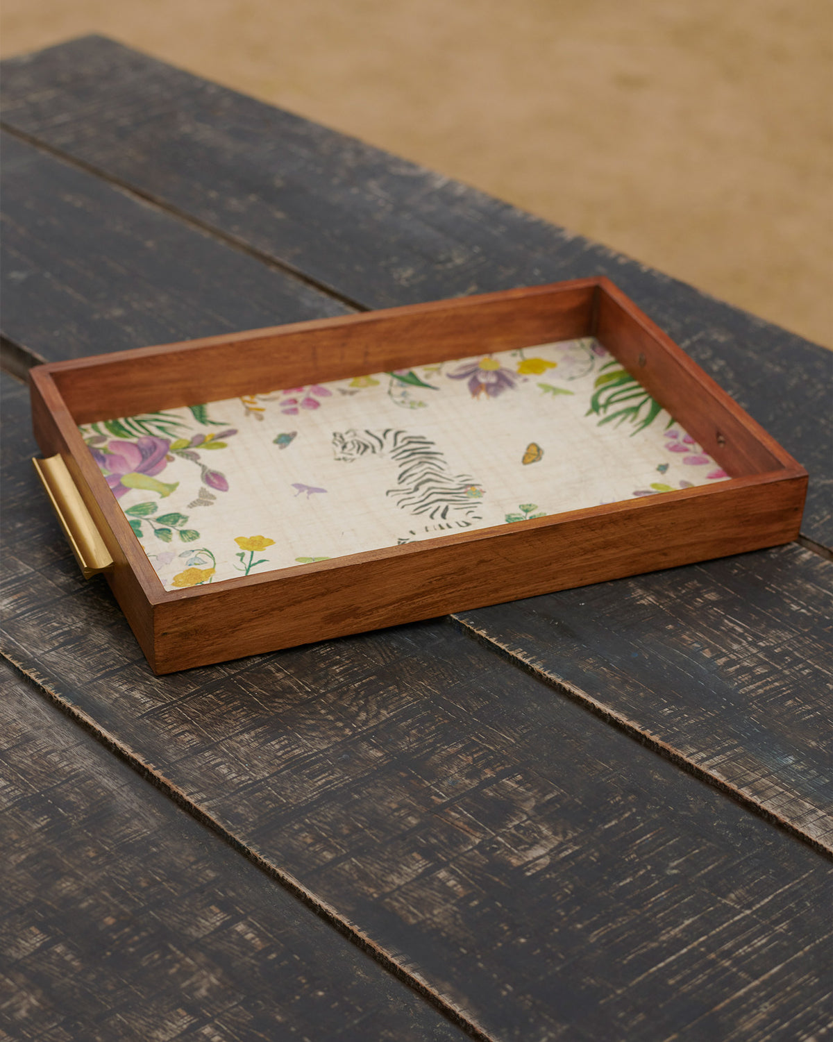 - A wooden tray, the print borrows from a valley of flowers and the life that teems within it