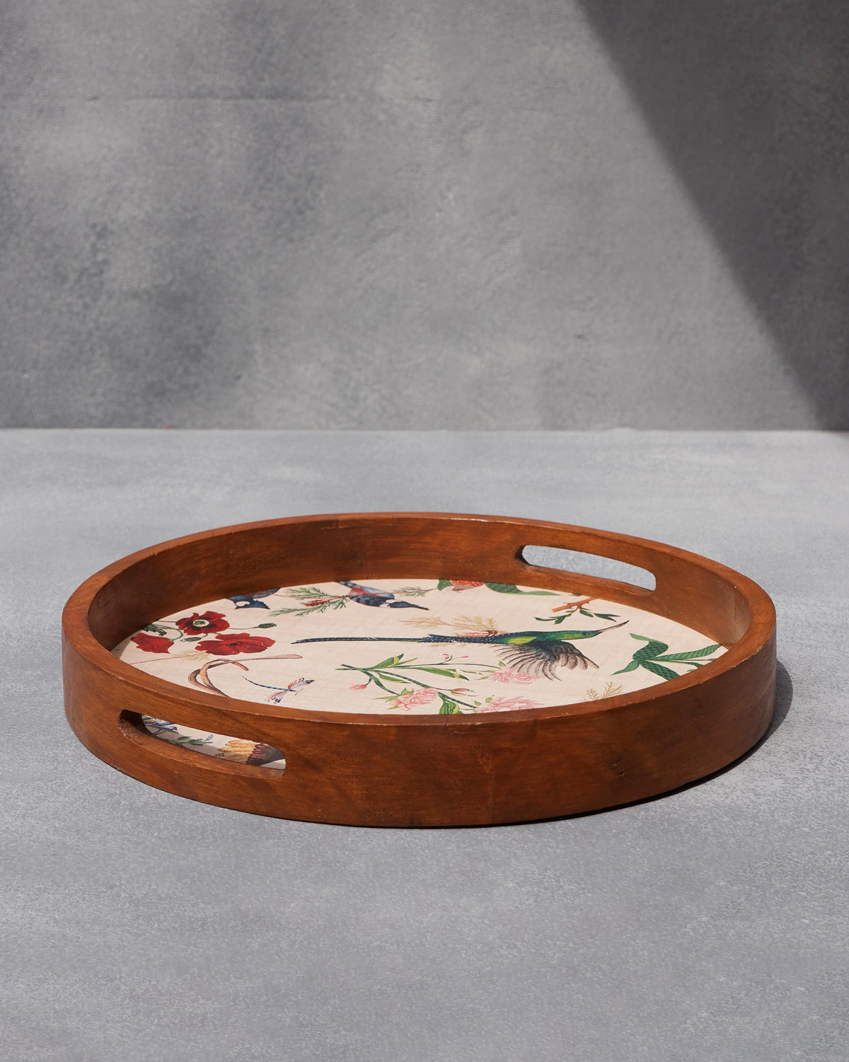 - A wooden tray, the print borrows from a valley of flowers and the life that teems within it