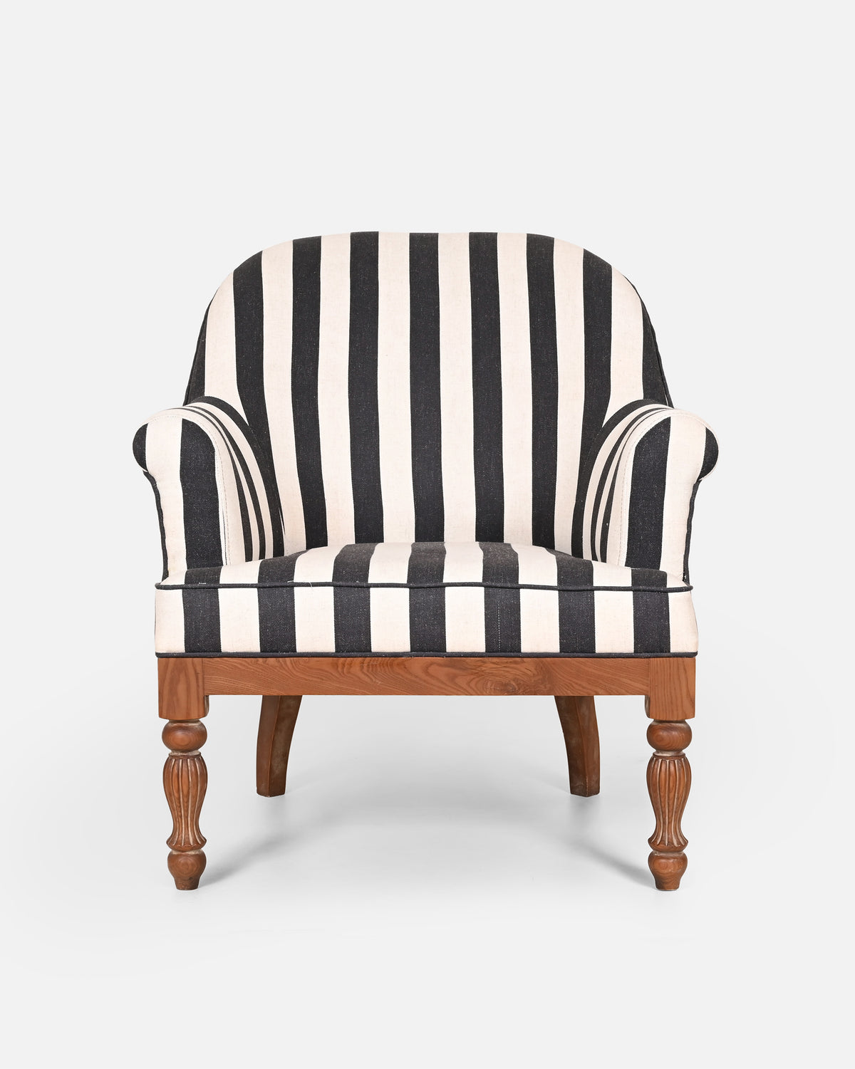 - Crafted with a solid wood frame and white ash legs, it’s upholstered in our signature charcoal Nicobar stripes for a graphic yet versatile finish.