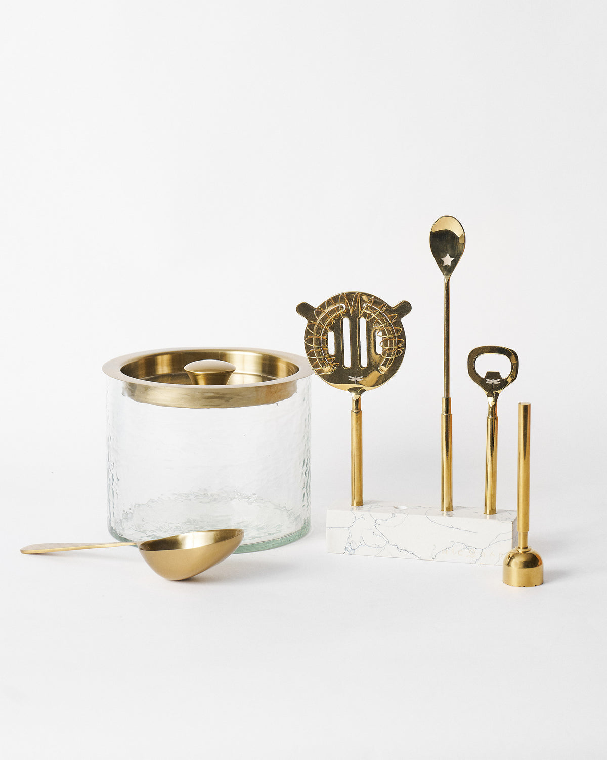 - Go gold after dark with the Aurum Night Bar Set, where the gleaming Sitara Ice Bucket & Scoop meets the luxe Aurum Bar Tools (Set of 4).