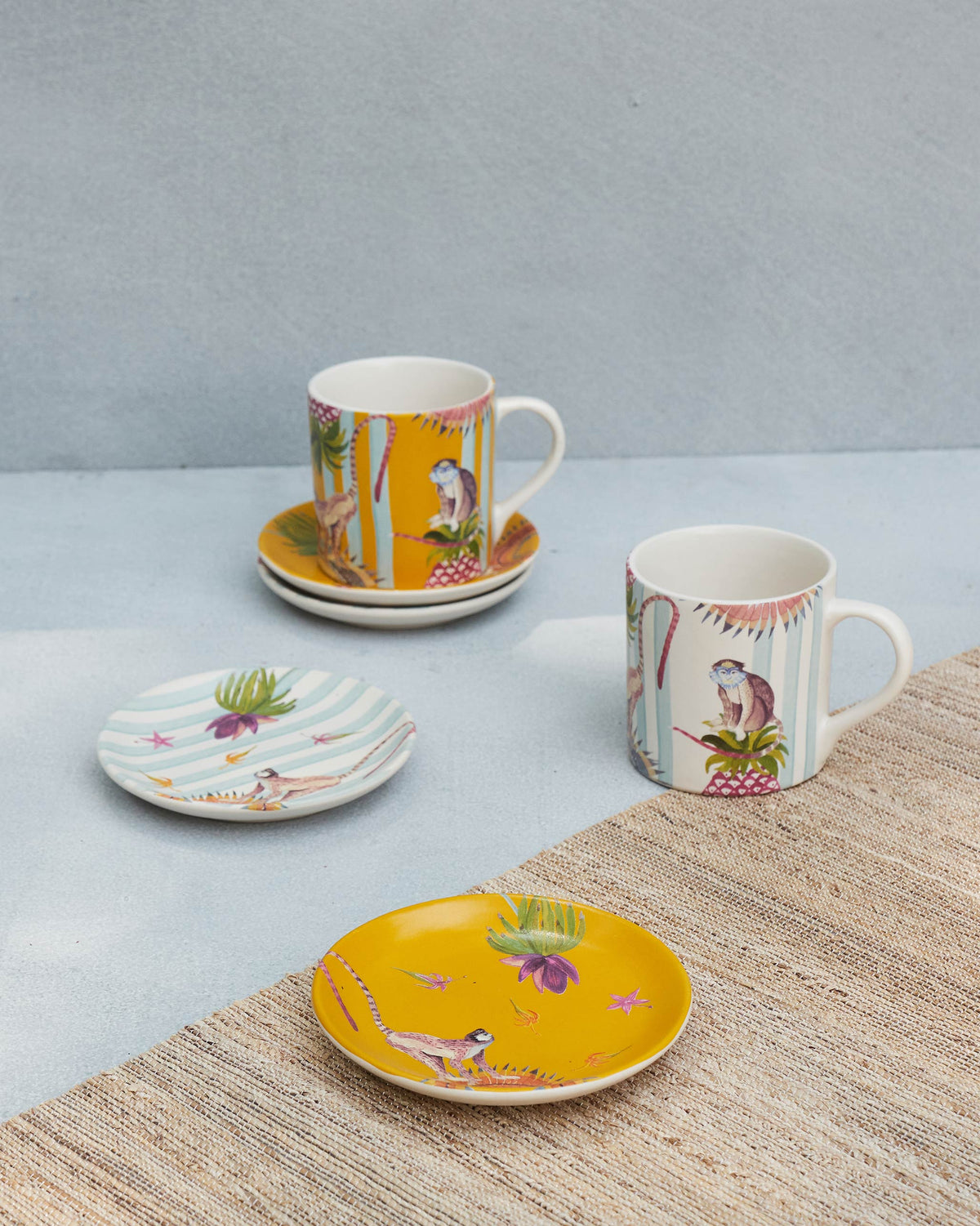 - The Mahi Gift Set comes with 4 straight mugs and 4 tea plates with brilliant and bright motifs inspired by our travels.