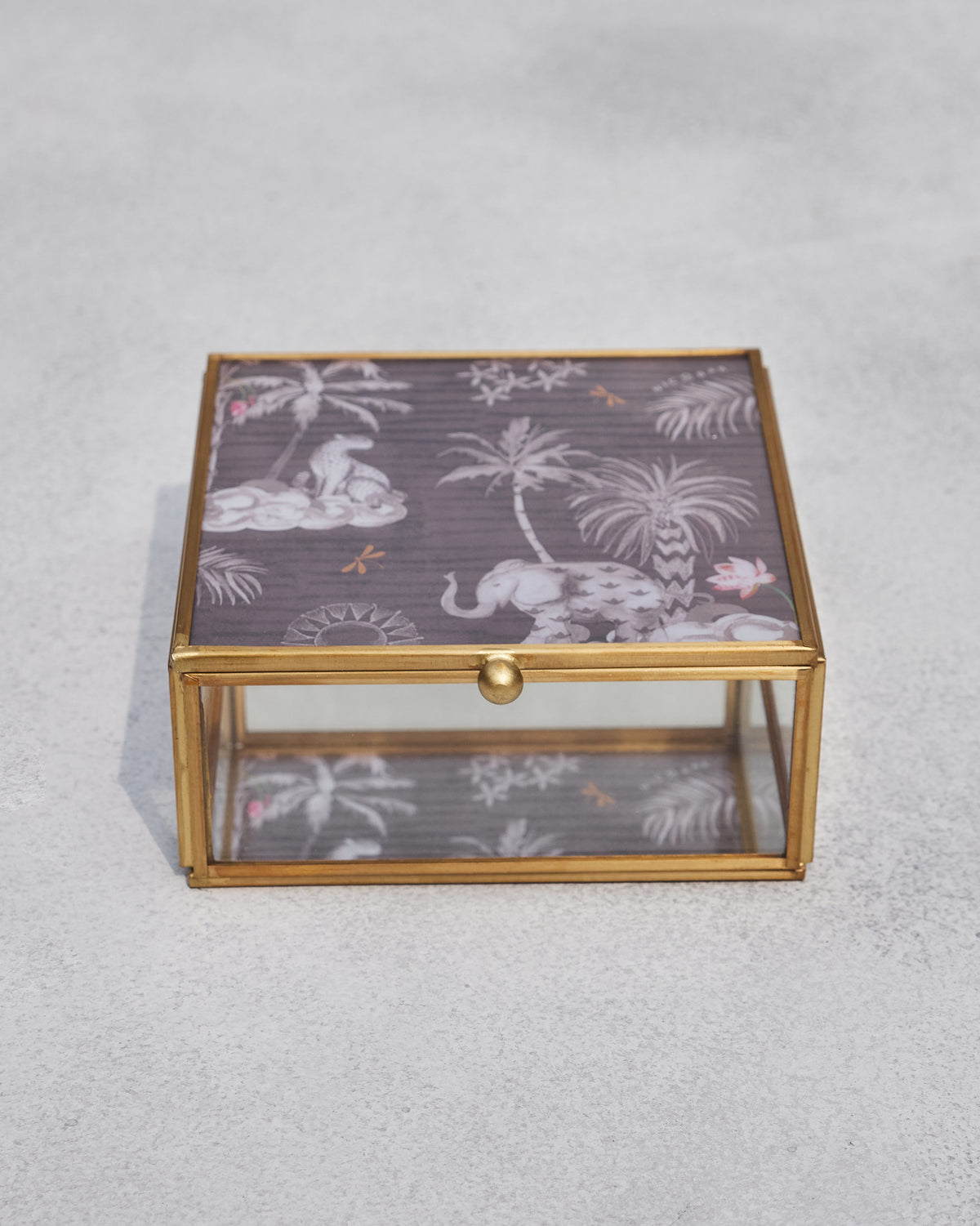 - Crafted in glass and brass, this jewellery box comes feature classic Nicobar icons picked out from our travels