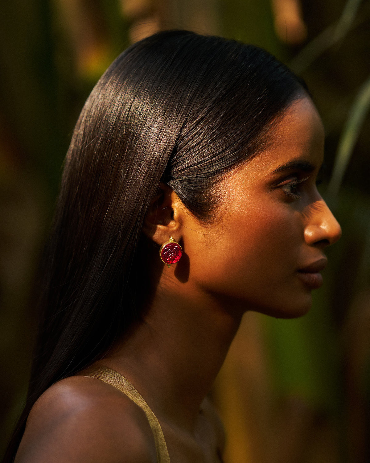- The small Anar Glass Seal Studs are hand-carved red glass seal studs, crafted in the vibrant streets of Jaipur. Delicate yet bold, they offer a lightweight statement perfect for any occasion.