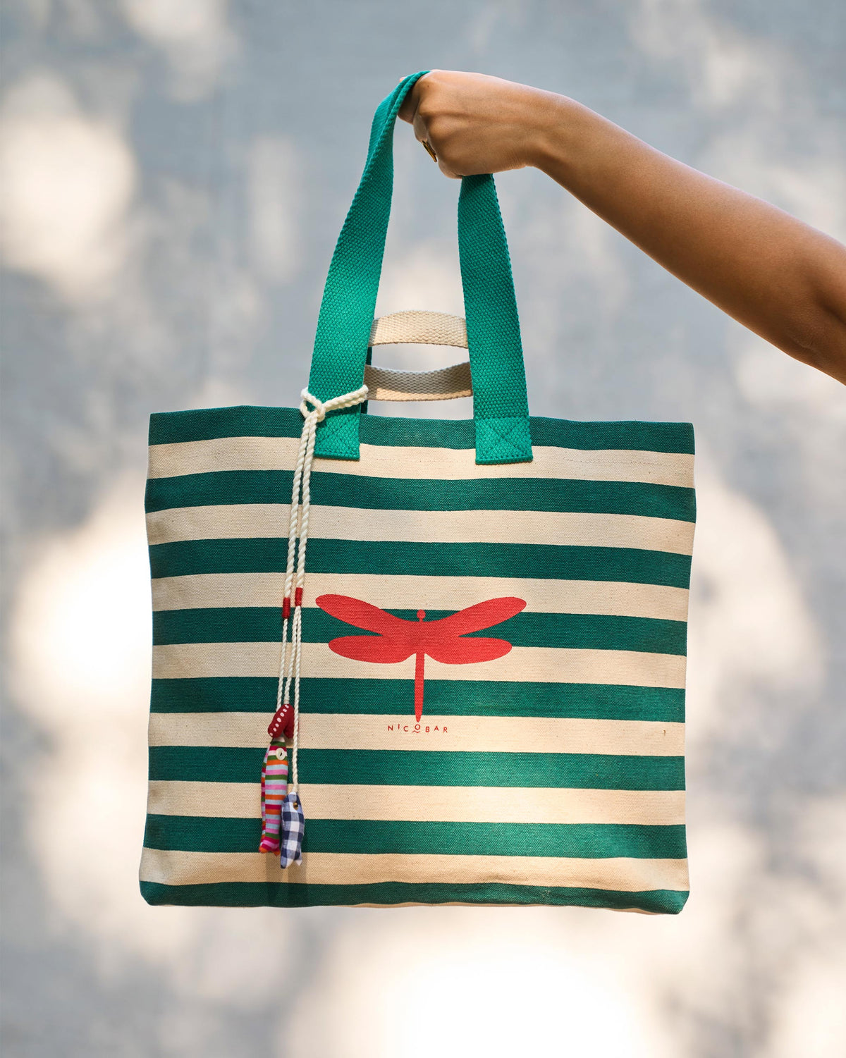 Bagan Stripe Tote - Teal & Ivory