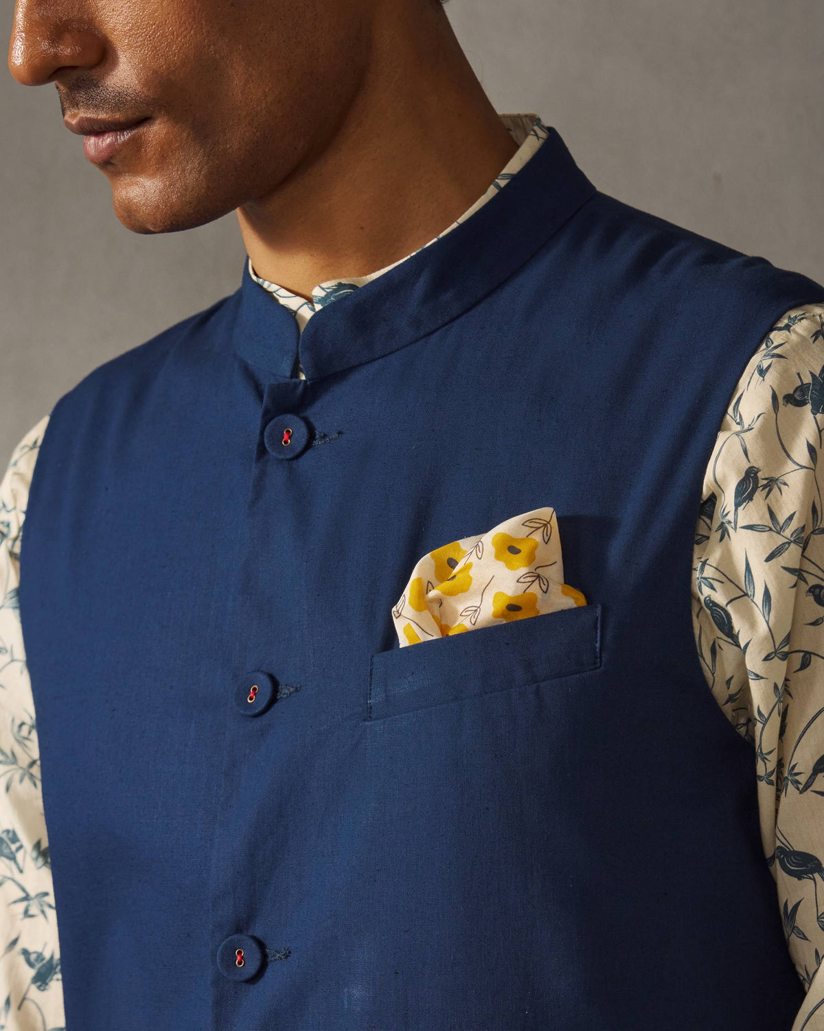 Bageecha Pocket Squares - Dark Blue & Yellow