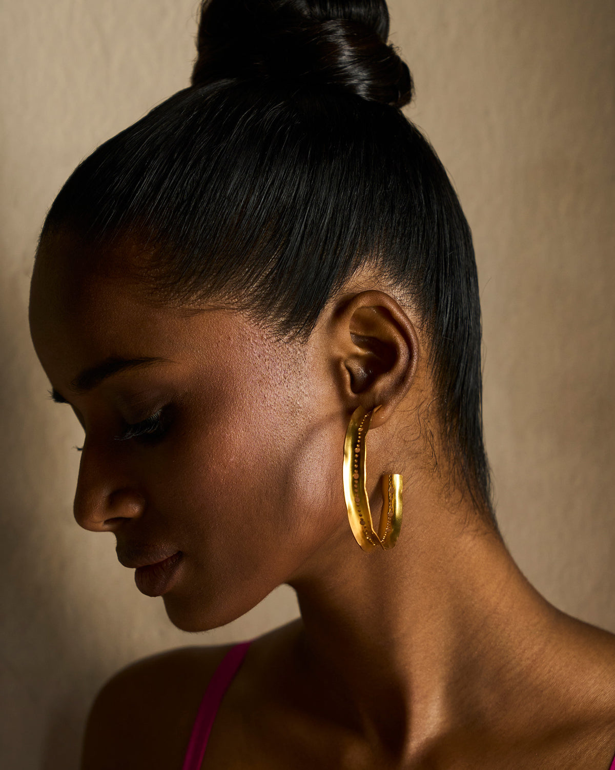 - Each piece of Nicobar's Boondi earrings is unique and beautiful. It is handcrafted in brass, plated in gold. Tiny boondi like details on the earrings add to the beauty of the design.