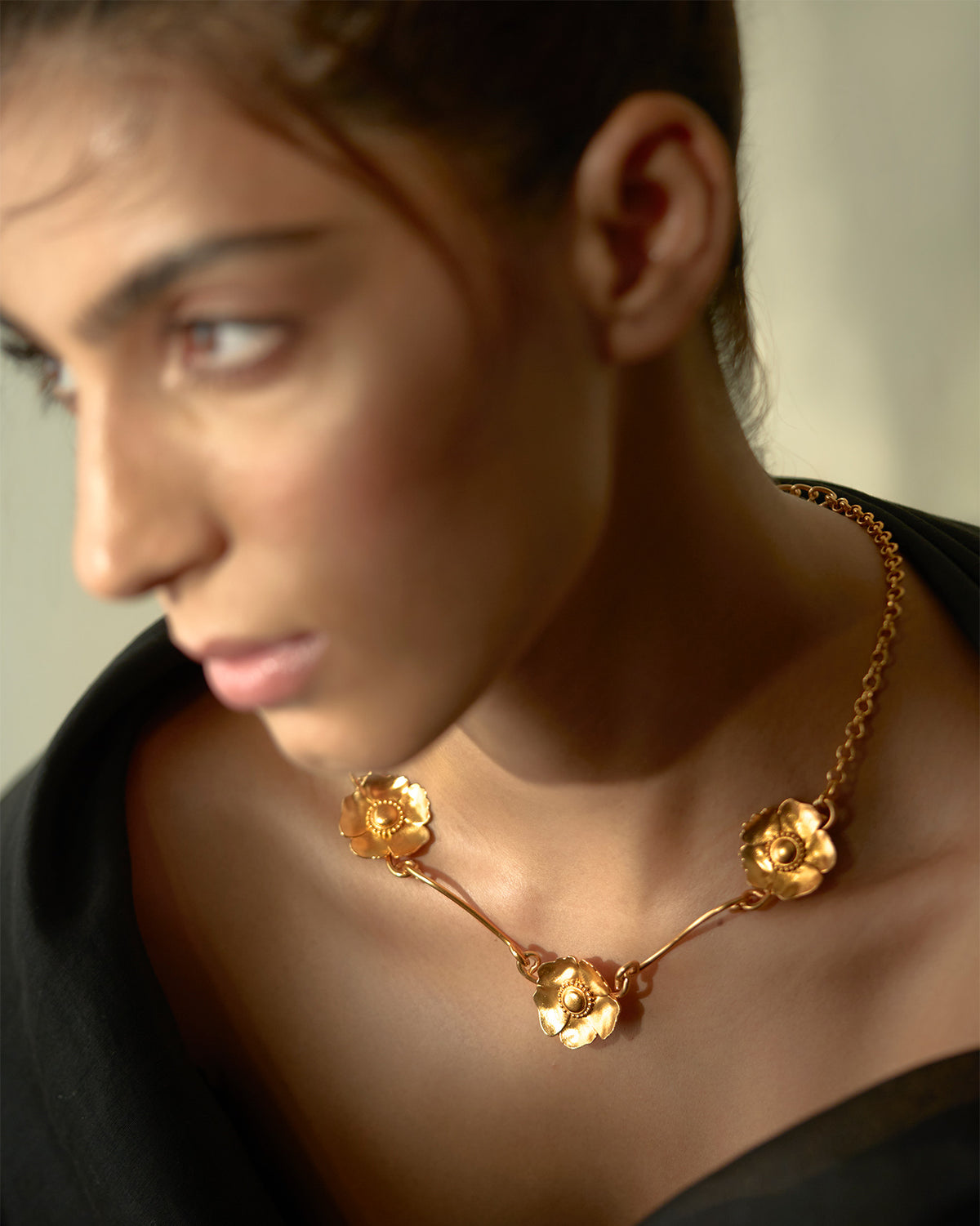 - This necklace draws inspiration from the beautiful wildflowers and winding roots of Cambodia. It is designed to be a timeless and versatile addition to your jewellery collection.