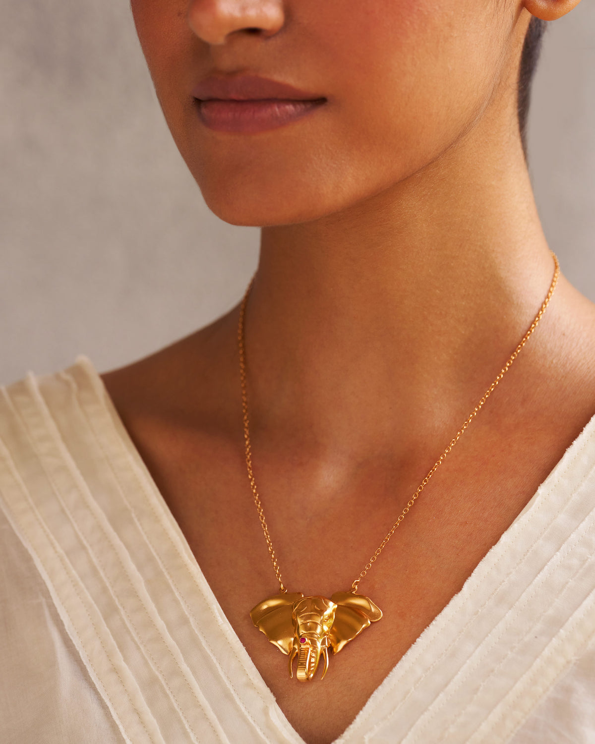 - Inspired by our love for animals, the Haathi Necklace is a bold piece, cast in brass and plated in gleaming gold.
