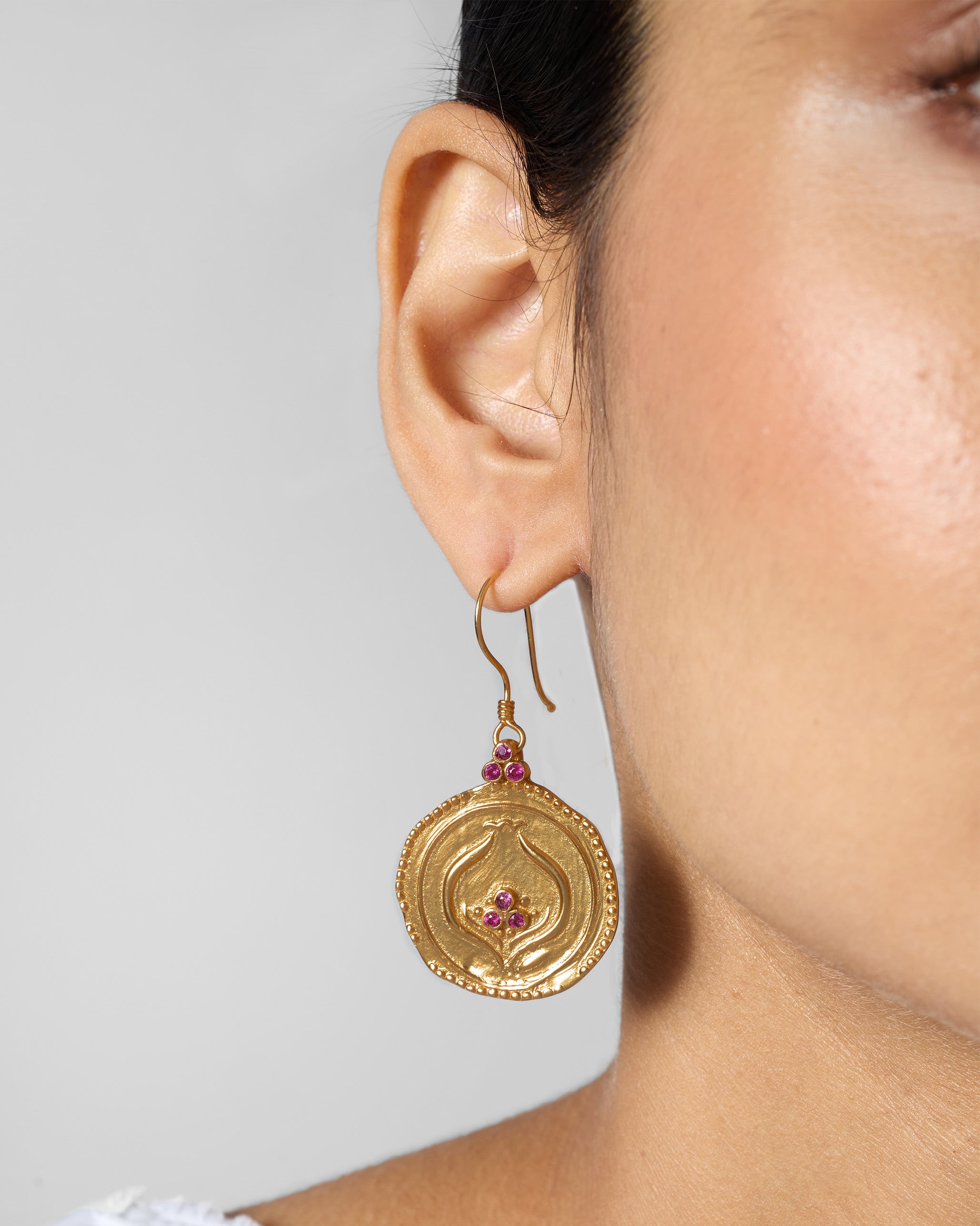 - Hand-assembled with care, it is crafted in brass and dipped in gold, accented with zircon for a subtle, refined sparkle.